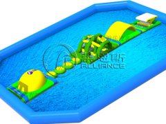 移動水上樂園一般需要場地比較大,幾百平方甚至上千平方的面積,因?yàn)楸旧硎撬嫌螛穲鏊?,所以不能單調(diào),偌大的支架游泳池需要搭配有趣味性的玩具和水上浮具,恰到好處的水上...