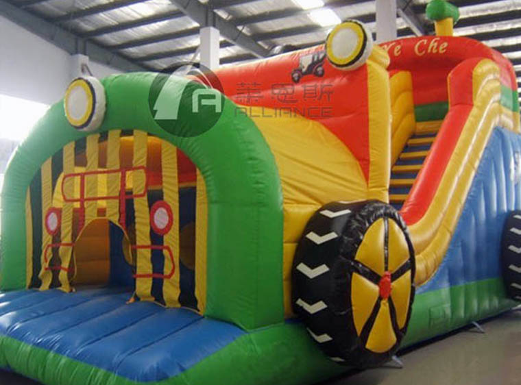 產(chǎn)品介紹 產(chǎn)品名稱:汽車充氣滑梯產(chǎn)品規(guī)格:9*5*5.6m(長(zhǎng)*寬*高)產(chǎn)品材料:0.480.02mm環(huán)保夾網(wǎng)PVC配置:風(fēng)機(jī)、布料、膠水 供氣方式:風(fēng)機(jī)連續(xù)供氣使用壽命:12-14萬(wàn)人次保修期:產(chǎn)品整