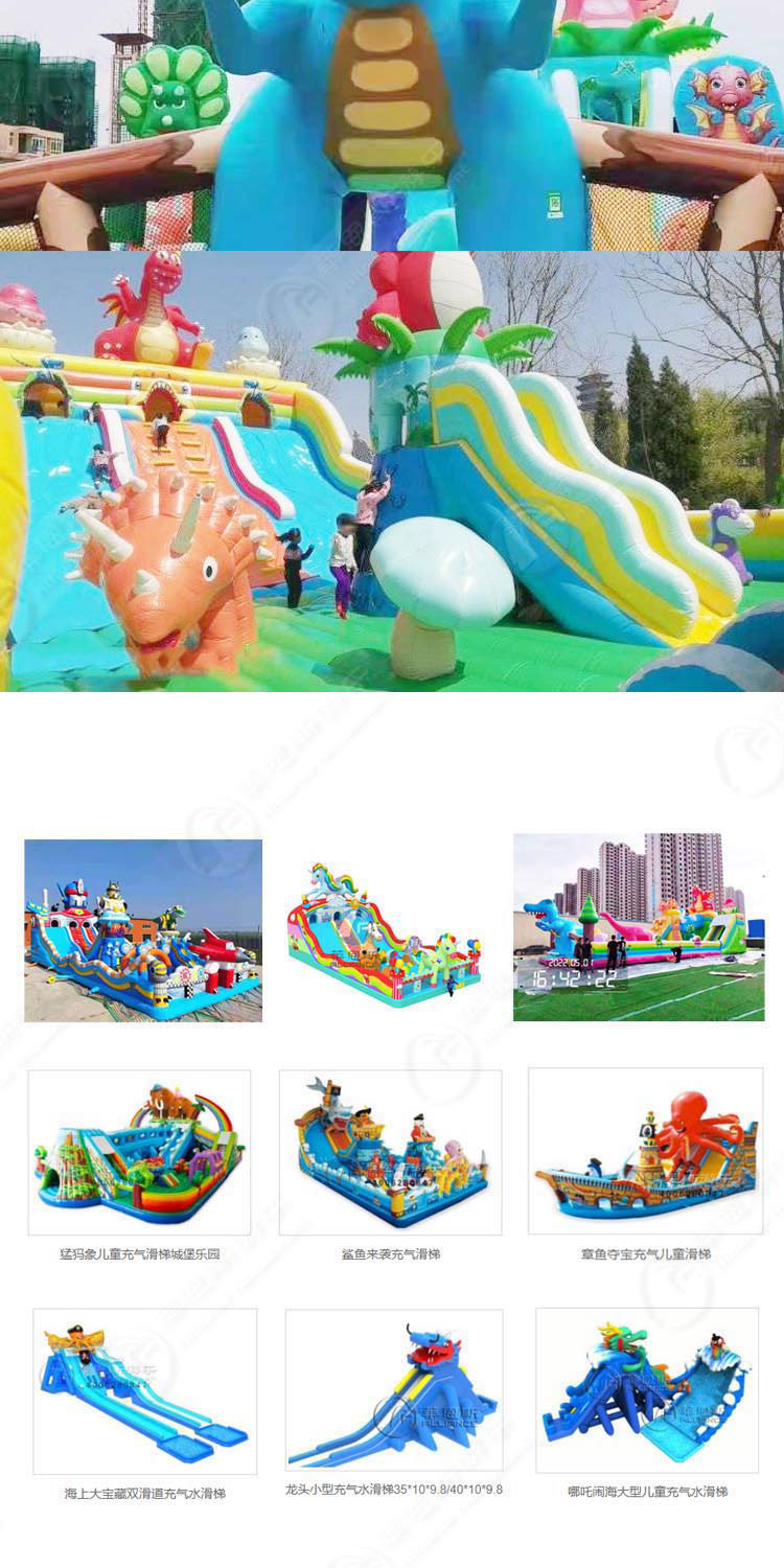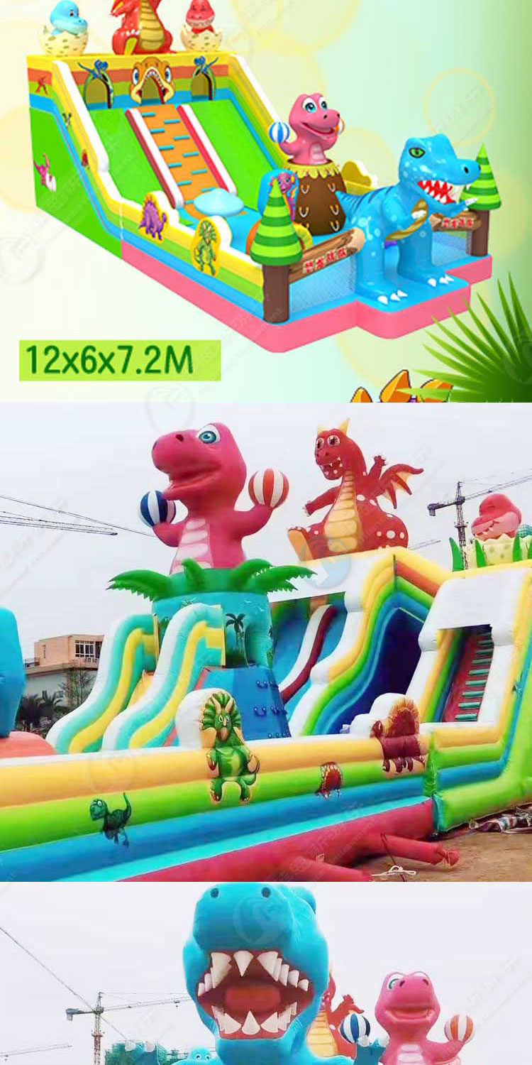 恐龍戰(zhàn)隊充氣滑梯城堡造型逼真、色彩鮮艷,玩法多樣,滿足小朋友的跳、爬、騎、滑、攀、鉆等新奇的活動方式,促進智力開發(fā)、鍛煉身體,愉悅身心的目的。