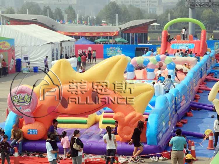 產(chǎn)品介紹 產(chǎn)品名稱(chēng):早上好充氣沖關(guān)設(shè)備產(chǎn)品規(guī)格:42.4*6.3*5.6m產(chǎn)品材料:0.480.02mm環(huán)保夾網(wǎng)PVC配置:風(fēng)機(jī)、布料、膠水供氣方式:風(fēng)機(jī)連續(xù)供氣使用壽命:12-14萬(wàn)人次 保修期:充氣沖關(guān)