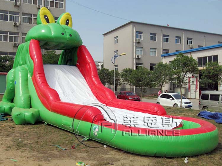 產(chǎn)品名稱:青蛙II型充氣水滑梯產(chǎn)品規(guī)格:12.8*4.8*5.5m產(chǎn)品材料:一等環(huán)保夾網(wǎng)pvc配置:風(fēng)機(jī)、布料、膠水充氣方式:連續(xù)性充氣使用壽命:10-12萬人次保修期:3年產(chǎn)品描述: 青蛙II型充氣水滑梯造型逼真,青蛙舌頭為滑梯梯身,末端為一體式充氣水池。適合做為移動(dòng)水上樂園設(shè)備。適合人群: 3-16歲兒童適用場地: 可用于城市廣場、公共休閑空地、公園、操場、景區(qū)、度假村、體育場館、城鄉(xiāng)結(jié)合空曠處和小河、湖泊、海邊等區(qū)域,無需基建,設(shè)施可移動(dòng)組合,不長期占用、傷害場地。溫馨提醒 在購買充氣水滑梯時(shí),您不但要考慮價(jià)格,更要重視質(zhì)量,優(yōu)質(zhì)的pvc材質(zhì)能提高產(chǎn)品安全保障和使用壽命。