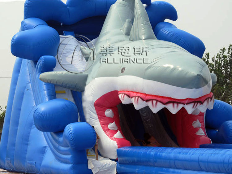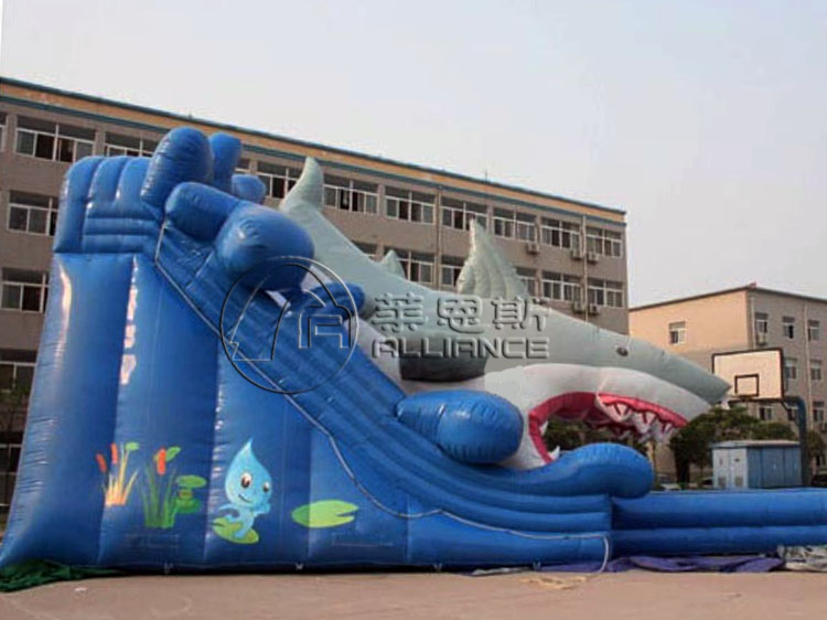 產(chǎn)品介紹 產(chǎn)品名稱:鯊魚充氣水滑梯產(chǎn)品規(guī)格:20*9*9m選配水池:充氣水池產(chǎn)品材料:一等環(huán)保夾網(wǎng)pvc配置:風機、布料、膠水充氣方式:連續(xù)性充氣使用壽命:10-12萬人次保修期:3年產(chǎn)