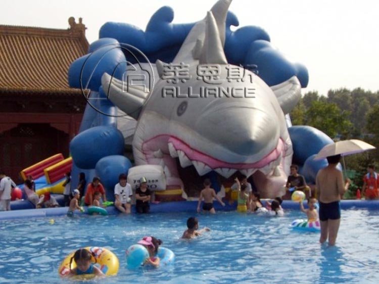 產(chǎn)品名稱:鯊魚充氣水滑梯產(chǎn)品規(guī)格:20*9*9m選配水池:充氣水池產(chǎn)品材料:一等環(huán)保夾網(wǎng)pvc配置:風機、布料、膠水充氣方式:連續(xù)性充氣使用壽命:10-12萬人次保修期:3年產(chǎn)品描述: 鯊魚充氣水滑梯血口大張,氣勢兇猛,好像躍出海面要吃掉靠近的敵人??鋸埖脑煨头浅N扇撕蛢和?,適合連接充氣水池做為移動水上樂園設(shè)備。適合人群: 3-16歲兒童適用場地: 可用于城市廣場、公共休閑空地、公園、操場、景區(qū)、度假村、體育場館、城鄉(xiāng)結(jié)合空曠處和小河、湖泊、海邊等區(qū)域,無需基建,設(shè)施可移動組合,不長期占用、傷害場地。溫馨提醒 在購買充氣水滑梯時,您不但要考慮價格,更要重視質(zhì)量,優(yōu)質(zhì)的pvc材質(zhì)能提高產(chǎn)品安全保障和使用壽命。