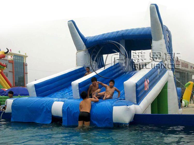 產(chǎn)品名稱:海豚充氣水滑梯產(chǎn)品規(guī)格:11*4.5*5.5m選配水池:支架游泳池產(chǎn)品材料:一等環(huán)保夾網(wǎng)pvc配置:風(fēng)機(jī)、布料、膠水充氣方式:連續(xù)性充氣使用壽命:10-12萬(wàn)人次保修期:3年產(chǎn)品描述: 海豚充氣水滑梯采用可愛的海豚造型,其中設(shè)計(jì)兩個(gè)滑道,可以鏈接不同尺寸支架游泳池,容納更多小朋友同時(shí)互動(dòng)嬉水。適合作為水上樂園設(shè)備。適合人群: 3-16歲兒童適用場(chǎng)地: 可用于城市廣場(chǎng)、公共休閑空地、公園、操場(chǎng)、景區(qū)、度假村、體育場(chǎng)館、城鄉(xiāng)結(jié)合空曠處和小河、湖泊、海邊等區(qū)域,無需基建,設(shè)施可移動(dòng)組合,不長(zhǎng)期占用、傷害場(chǎng)地。溫馨提醒 在購(gòu)買充氣水滑梯時(shí),您不但要考慮價(jià)格,更要重視質(zhì)量,優(yōu)質(zhì)的pvc材質(zhì)能提高產(chǎn)品安全保障和使用壽命。