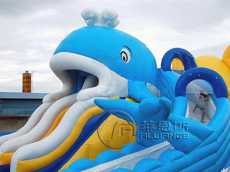 產(chǎn)品名稱:小鯨魚充氣水滑梯產(chǎn)品規(guī)格:6.8*7.8*6.8m選配水池:10x8m或10x10m充氣水池產(chǎn)品材料:一等環(huán)保夾網(wǎng)pvc配置:風(fēng)機、布料、膠水充氣方式:連續(xù)性充氣使用壽命:10-12萬人次保修期:3年產(chǎn)品描述: 小鯨魚是海洋動物,深受小朋友喜愛,小鯨魚水滑梯巧妙地把充氣水滑梯融入在鯨魚身軀中,結(jié)合充氣水池作為嬉水滑梯樂園,小朋友在其中嬉戲,仿佛置身于海洋之中。適合做為移動水上樂園設(shè)備。適合人群: 3-16歲兒童適用場地: 可用于城市廣場、公共休閑空地、公園、操場、景區(qū)、度假村、體育場館、城鄉(xiāng)結(jié)合空曠處和小河、湖泊、海邊等區(qū)域,無需基建,設(shè)施可移動組合,不長期占用、傷害場地。溫馨提醒 在購買充氣水滑梯時,您不但要考慮價格,更要重視質(zhì)量,優(yōu)質(zhì)的pvc材質(zhì)能提高產(chǎn)品安全保障和使用壽命。