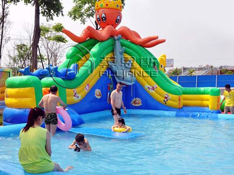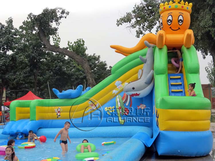 產(chǎn)品介紹 產(chǎn)品名稱:章魚充氣水滑梯產(chǎn)品規(guī)格:8.2*6.2*5.8m選配水池:充氣水池產(chǎn)品材料:一等環(huán)保夾網(wǎng)pvc配置:風機、布料、膠水充氣方式:連續(xù)性充氣使用壽命:10-12萬人次保修期: