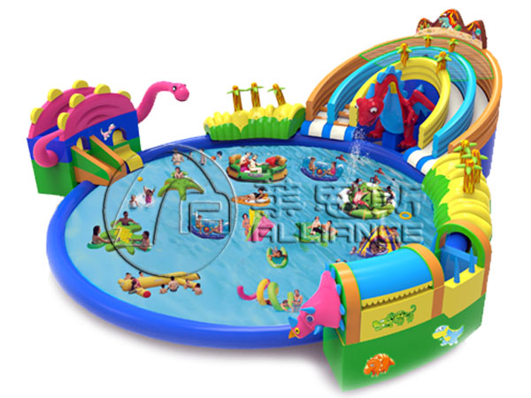 產(chǎn)品描述: 恐龍充氣水上樂園主題是霸王龍與雷龍嬉水的場面,采用環(huán)抱形狀,多種攀爬、涵洞、滑梯等造型。小朋友置身與恐龍一起嬉水的刺激體驗(yàn)。非常適合做為移動(dòng)水上樂園設(shè)備。